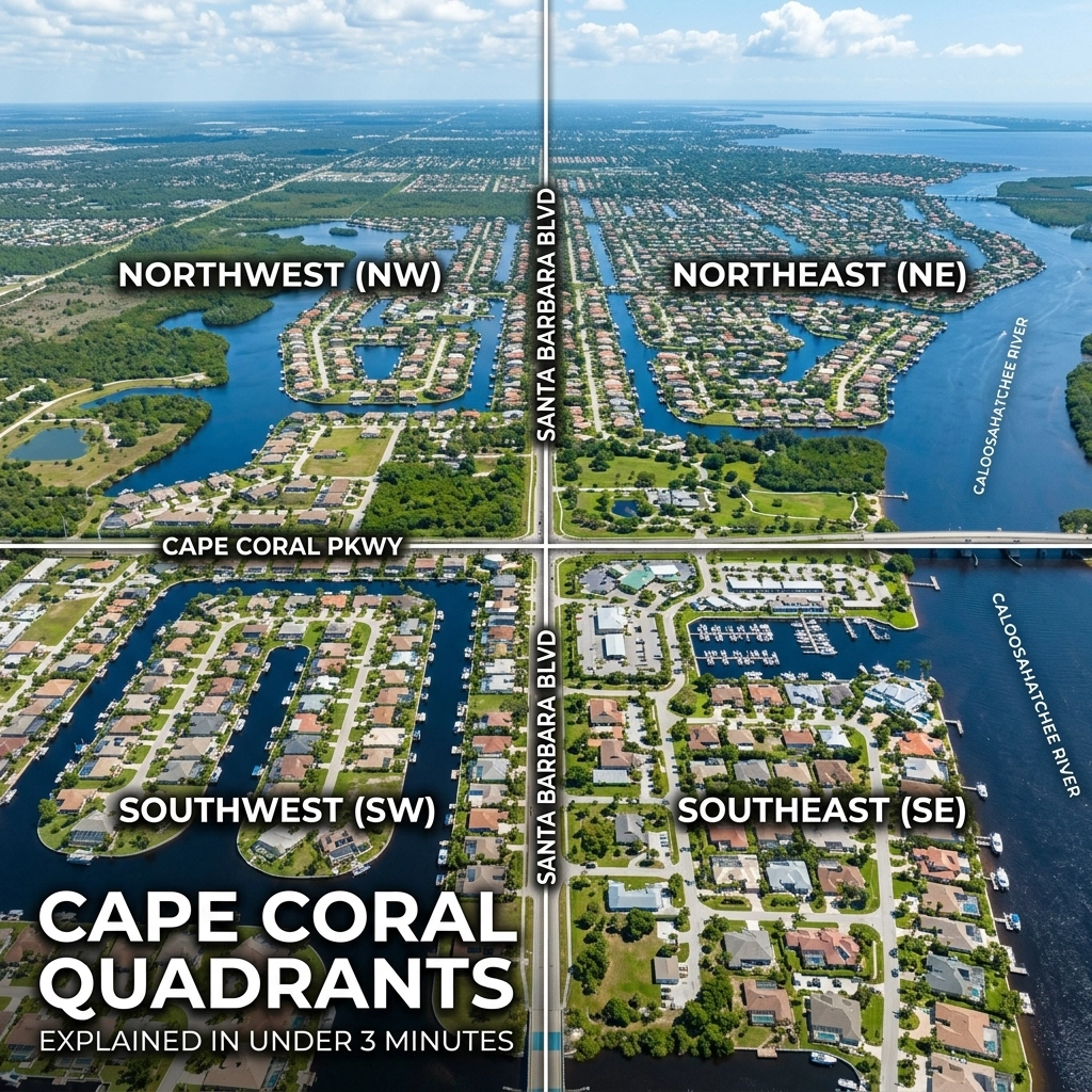 With over 400 miles of canals and a footprint of roughly 120 square miles, Cape Coral is a massive grid. To make sense of it all, the city is split into four distinct quadrants: Southeast (SE), Southwest (SW), Northeast (NE), and Northwest (NW).